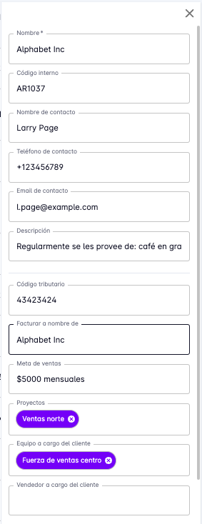 Esto abrirá un panel con un formulario donde podrás ingresar la información básica del cliente: