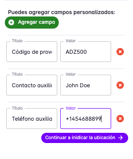 Además, puedes agregar campos adicionales por si los campos anteriores no son suficientes.