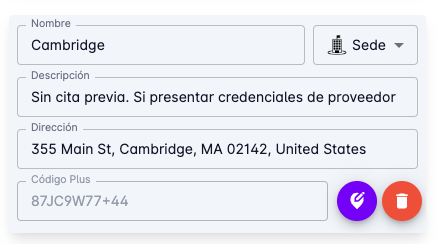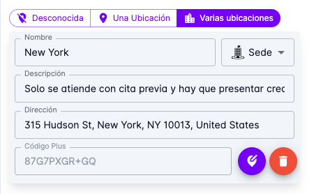 Si eliges "Varias ubicaciones", también llamado "Lugares", se desplegará un formulario donde podrás ingresar el tipo de lugar, el nombre, una descripción, la dirección y colocar su ubicación en un mapa.
