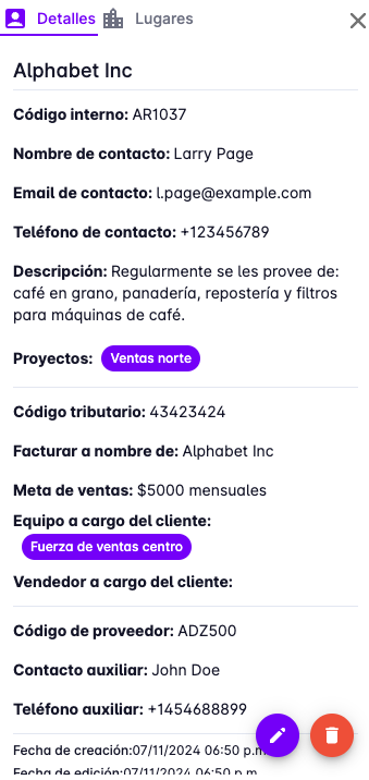 Esta acción abrirá en la misma página un panel en la parte derecha, donde se mostrarán los detalles del cliente.
