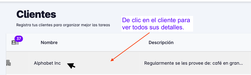 Para ver los detalles de un cliente, presiona el cliente en la lista de clientes.