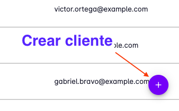 Para crear un nuevo cliente, presiona el botón "+" en la parte inferior derecha de la pantalla.