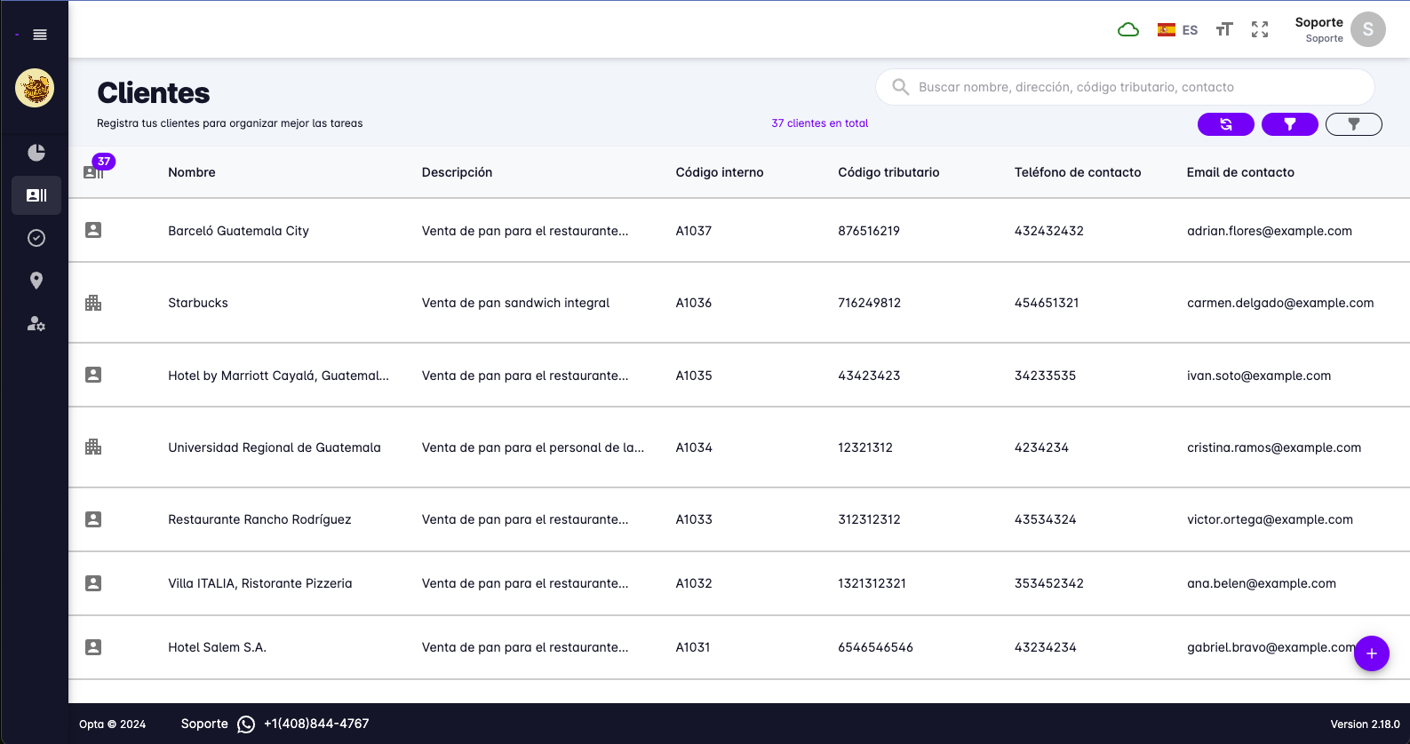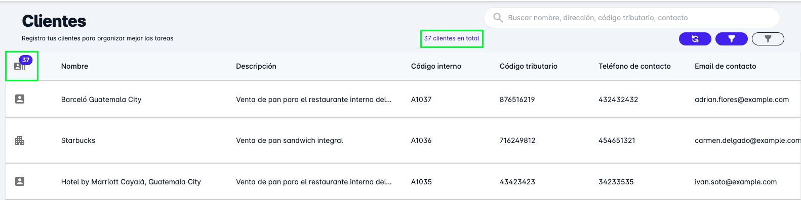 Este número también puede reflejar los clientes que se encontrarón luego de aplicar filtros.