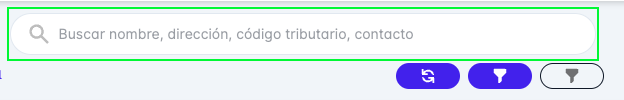 Puedes buscar por nombre, identificación tributaria, dirección y código interno.