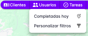 Aprovechando que se puede ver el recorrido del usuario puede desear ver las tareas que se completaron junto al recorrido en la misma pantalla. Una vez que tenga las tareas sobre el mapa use la funcionalidad de Filtrar recorridos para ver sobre el mapa el recorrido del usuario que completo las tareas.