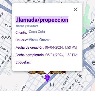 Al dar clic sobre un marcador se mostrará más información sobre la tarea.