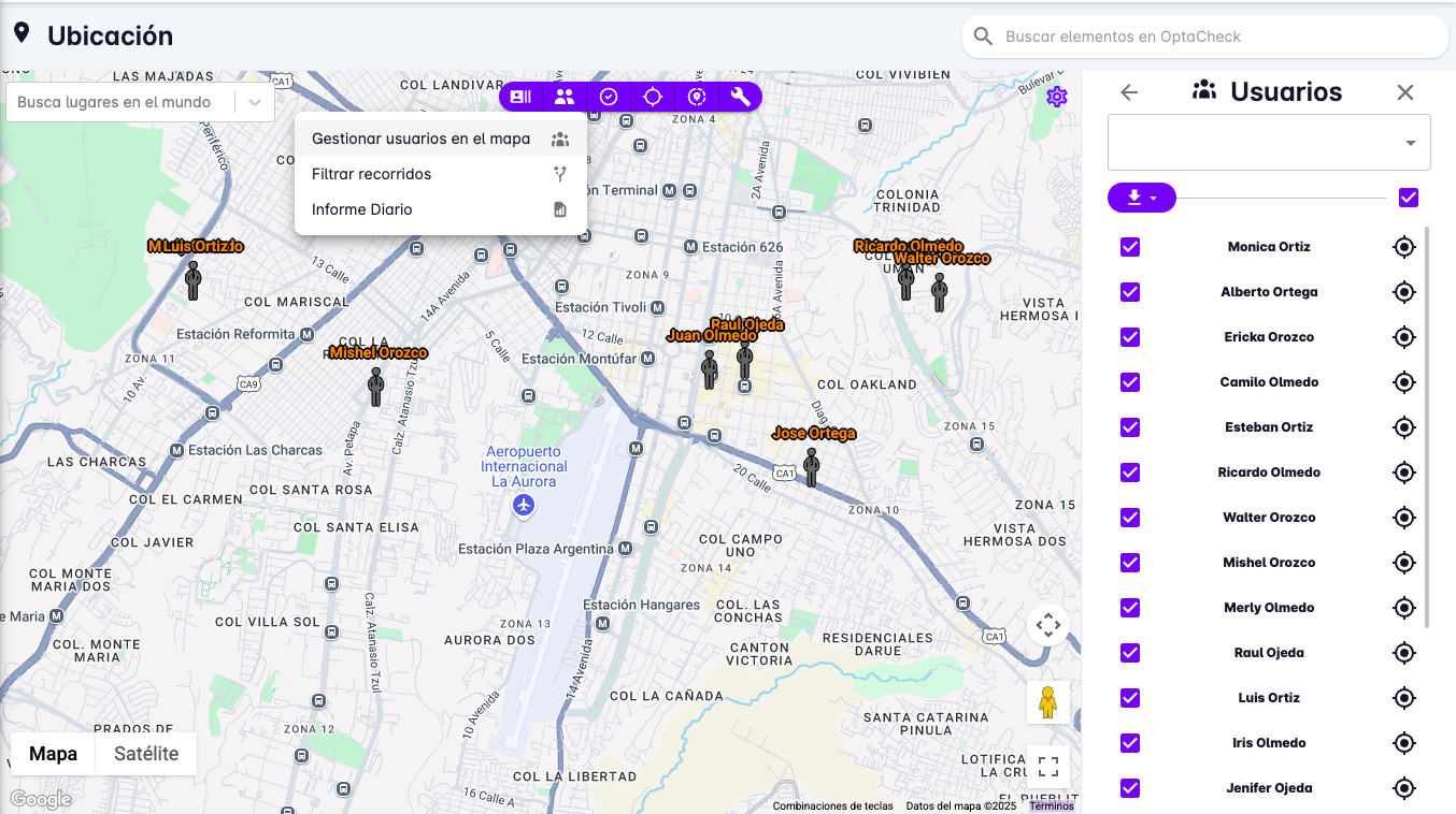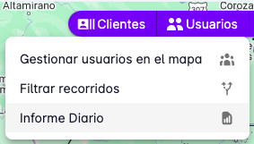 Para ver la ubicación de los usuarios, selecciona el botón Usuarios.