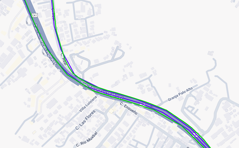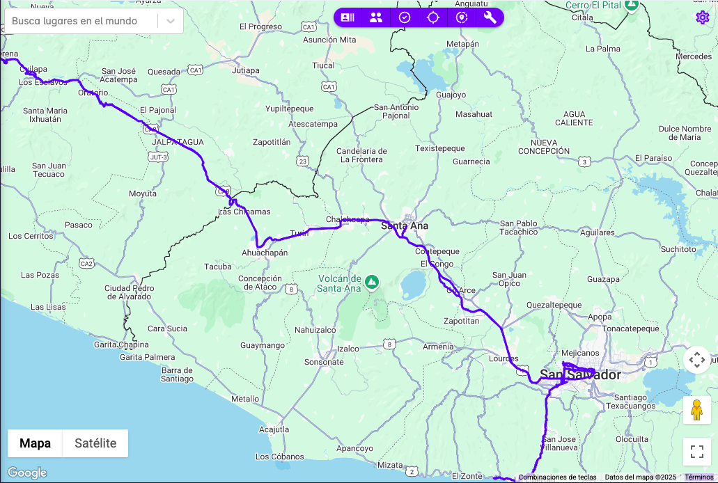 Al presionar el botón Añadir recorrido se mostrará el recorrido en el mapa y se agregará un registro del filtro en la parte inferior del panel derecho.