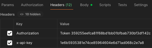 Ejemplo, con datos ficticios, de como lucen las cabeceras de una solicitud a la API: