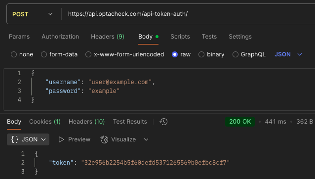 La API de autenticación se encuentra en la siguiente URL: https://api.optacheck.com/api-token-auth/