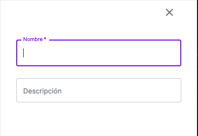 Se mostrará un panel en la parte derecha con un formulario para ingresar el nombre y descripción del proyecto.