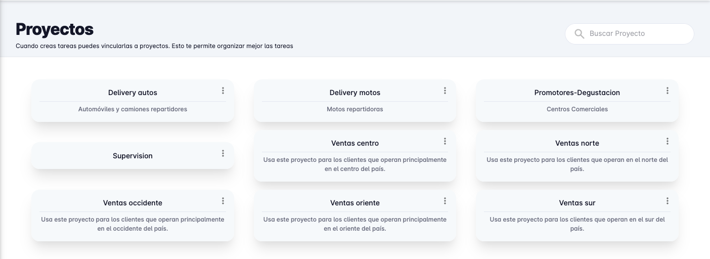 Los proyectos son una forma de organizar y agrupar los clientes y tareas de tu escritorio de manera lógica. Puedes crear tantos proyectos como necesites, y vincular clientes y tareas a ellos.