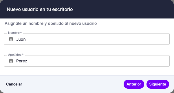 En el segundo paso se debe ingresar el nombre y apellido del usuario.