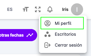 Para ver tu perfil, haga clic en tu nombre en la barra de navegación superior, se mostrará un menú con la opción Mi perfil.