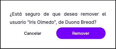 Se mostrará un mensaje de confirmación, para remover al usuario del Escritorio, presiona el botón Remover.