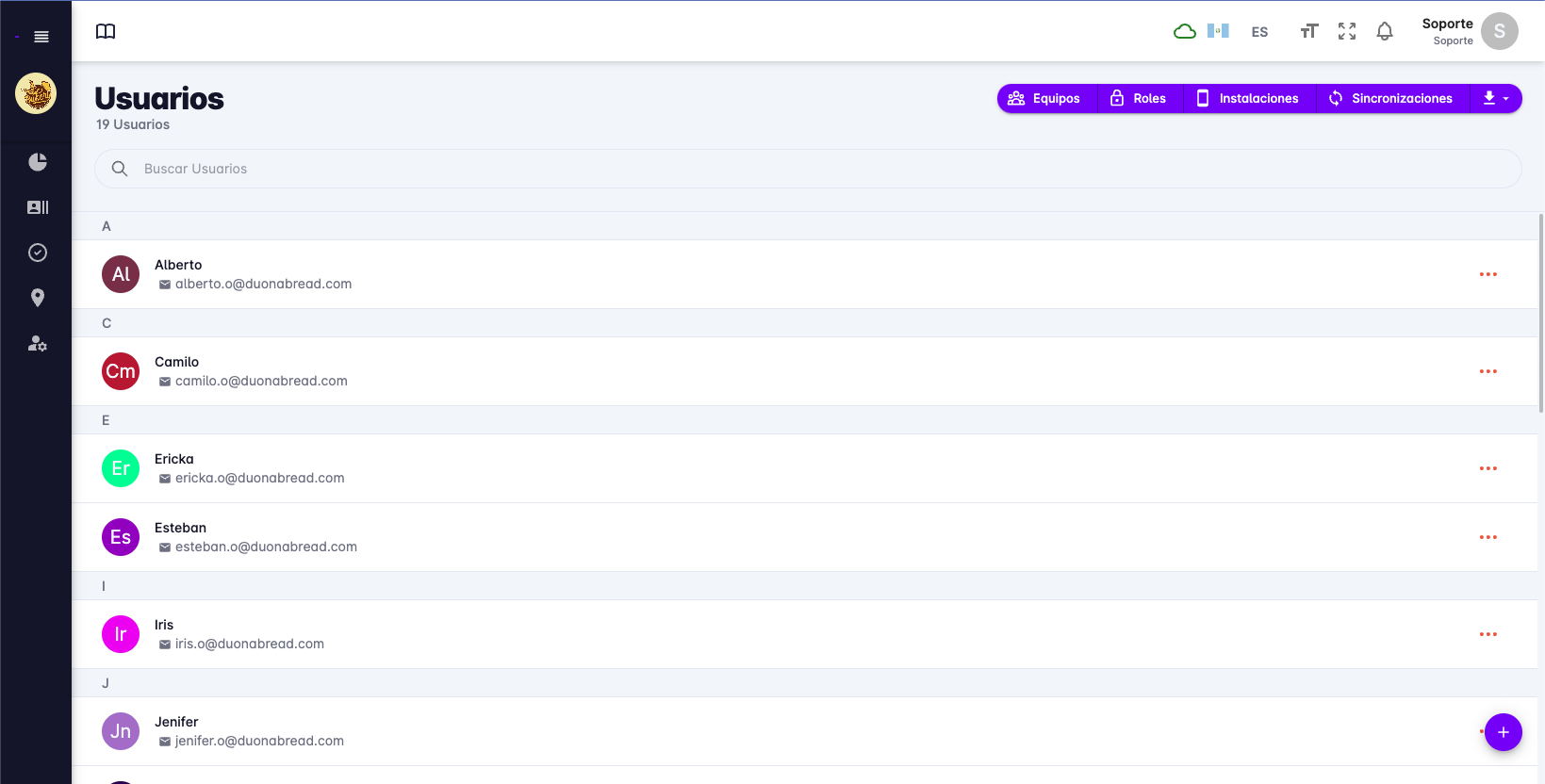 Al ingresar a la pantalla de usuarios, se mostrará un listado de todos los usuarios que pertenecen al Escritorio.