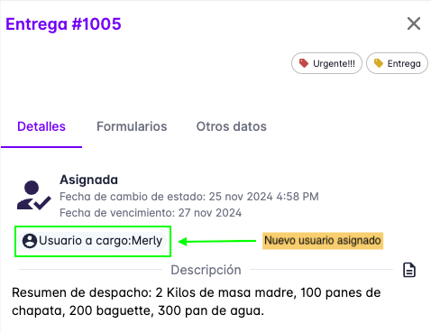 Inmediatamente la tarea se asignará al nuevo usuario.