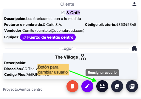 Si deseas cambiar el usuario al que está asignada la tarea, hay que hacerlo con el proceso detallado en la siguiente sección.