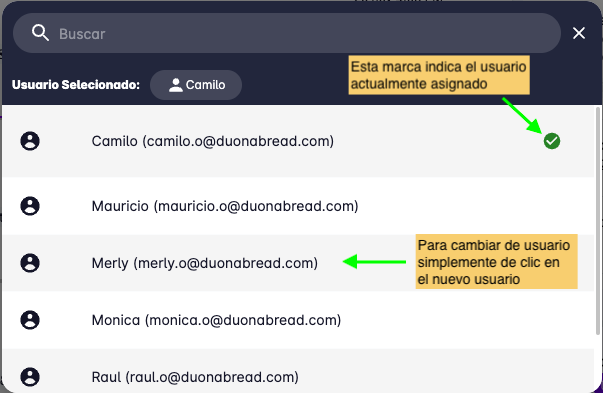 Esto abrirá una lista de los usuarios para que elijas a quién asignar la tarea.