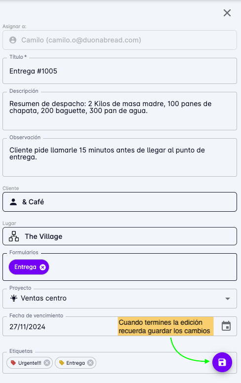 Al finalizar la edición de la tarea, da clic en el botón "Guardar".
