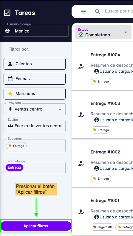 Coloca los filtros que desees y luego presiona el botón "Aplicar filtros".