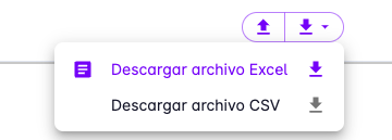 Para descargar las tareas que se muestran en la pantalla, presiona el botón de descarga que está en la parte superior derecha de la pantalla. Está disponible la opción de descargar en formato Excel y CSV.