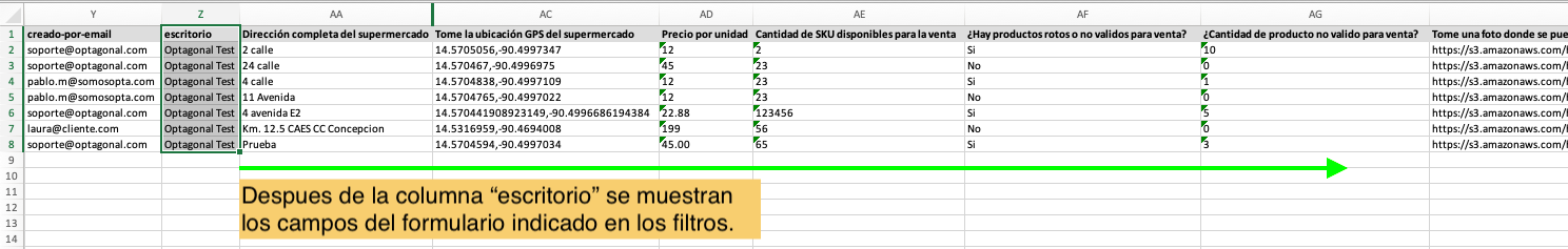 Para ver las respuestas de algún formulario en el archivo descargado es importante aplicar en los filtros el formulario que se desee.