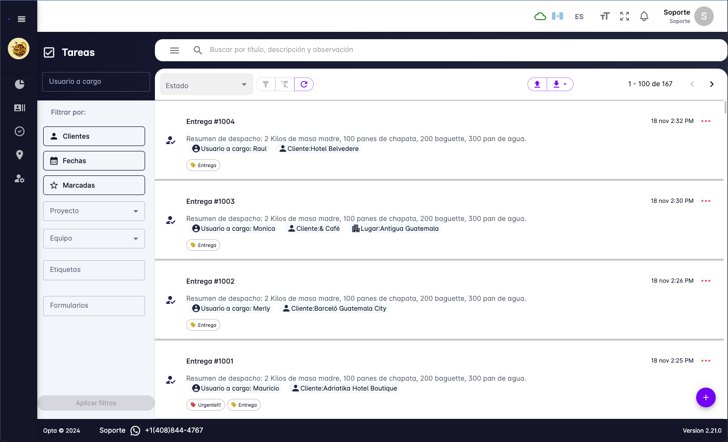 - Filtrar por estado, cliente, fechas, equipos, formulario y otras.